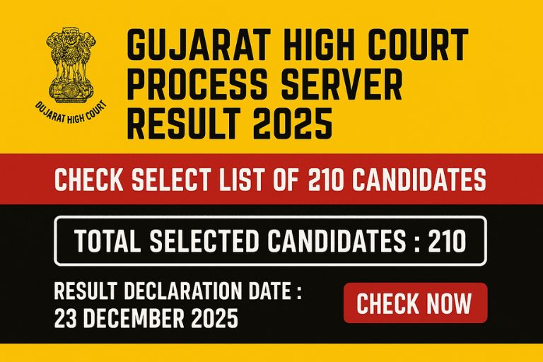 Gujarat High Court Process Server Result 2025 : Check Select List of 210 Candidates